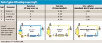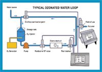 The third key measurement point is the end-loop or return point. In a system that destructs the ozone before distribution, the value at this point typically is zero. During periods of loop sanitization, the destruct UV lamp is turned off, and ozonated water is allowed to circulate in the loop. Depending on the loop size, temperature, and water flow rate, the value at this point may be very close to the residual value or may be slightly below because of decay. The end-loop detector value must register a defined threshold value for a set period of time. This is the "loop disinfection time" or loop DT. On continuously ozonated loops, the POU sensor becomes this indicator. Once sanitization is complete, the UV light is turned back on, and the end loop value should be zero before water is usable again. Table I provides some typical values being turned on and off during various stages of the destruct.