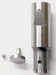 Figure 2: Custom F-type punch with removable tip for tablet punch-sticking assessments, including (left) setscrew, (middle) removable tip, and (right) fully assembled punch.