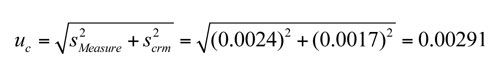 For a coverage factor of k=2, the overall expanded uncertainty of our measured CRM is 0.0058.