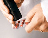 The microtags, which can be applied to a solid dosage form or to packaging components, are authenticated using a portable spectrometer-based optical reader. Wong says the company has received "quite a bit of interest" in applying the microtags to bulk API and are open to testing with an interested partner. TruTag's portable readers can confirm the authenticity of the product through a clear blister pack, so the product does not have to be destroyed. The microtags can also link to additional information stored in a manufacturer's database, such as e-Pedigree and track-and-trace systems.