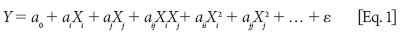 Design-of-experiments interpretation. The mathematical model generated for each response Y was a quadratic model with first-order interactions, built according to the following equation: