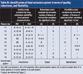 Table III: Identification of ideal extrusion system in terms of quality, robustness, and flexibility.