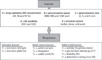 In the first part of the current study, the influence of water quantity and extrusion speed was investigated for a highly soluble drug product at a fixed concentration in the formula. A design of experiments underlined significant differences between the three extrusion systems (1). This article will continue to compare radial, dome, and axial single-screw extruders in terms of process and pellet quality. This article specifically will investigate the influence of formulation and spheronization variables on process and pellet properties by using a response surface design of experiments, a powerful statistic tool allowing a rational study of the experimental parameters and enhanced process comprehension.