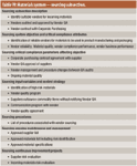 Subsection analysis and evaluation. Each materials system subsection should be described and analyzed regarding objectives and successful system attributes. Critical activities, potential variation affecting performance, and related factors should be identified, and a detailed business process should be developed for each subsection. Gaps and improvement projects may be identified as well, and a CAPA project may be committed based on risk. Adequacy of procedures should be reviewed. Table IV describes the sourcing subsection of the materials quality system. This analysis should be completed for all identified subsections within the quality system.