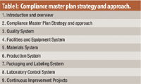 It is proposed that documentation of the CbD program be contained in a compliance master plan (CMP). The CMP is analogous to the current and well-accepted VMP. The concept of a CMP has been suggested by Nash (6) based on the work of Borkar (7). These authors proposed that six quality systems and 26 quality-system elements form the basis for a CMP. Table I provides an example CMP table of contents indicating section titles according to a quality-systems structure (8). Table II describes the specific content of a chapter discussing a quality system using the CbD general concept.