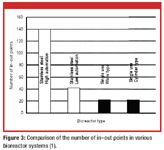 NNE Pharmaplan compared the number of IOs for various stainless-steel and single-use bioreactors for simple and complex designs, which differ in their degree of automation because some manual operations are definitely possible in stainless steel systems (1). As demonstrated in Figure 3, single-use systems show a potential for dramatic reductions—at least 50%—in the number of IOs. At an average price of approximately $3000 per IO, these reductions can translate to significant savings in installation costs.