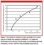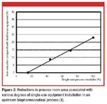 NNE Pharmaplan calculated the reduction in equipment footprint that could be achieved if single-use systems were installed as process modules instead of 100% stainless steel for the same upstream area (1). Figure 2 shows that it is possible to save about 25% of the space that a similar stainless steel installation takes, based on the extent to which single-use technology is employed. These reductions can come from flexibility for future applications or investment-cost savings that result from smaller building costs. Typical cleanroom cost ratios range from $3000 to $5000 per square meter. Therefore, single-use equipment also can lower buildings' fixed costs when used in cleanroom areas.