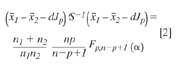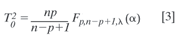 To find a close expression for d, it may be easy to express equation 2 in terms of observed Hotelling's T02 statistic and the non-central F distribution as follows: