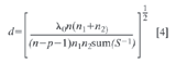 where Fp,n2p11 (a) is the (12a) 100% percentile of the central F distribution with p and n2p11 degrees of freedom and n(5 n11n222) is the within-sample degrees of freedom. Assume m 5 dJp, where Jp is a p dimensional column vector of 1's. The maximum mean difference (d 5 max d) for which the equivalent of two given profiles could be concluded with (12a) 100% confidence given the data are the solution of d to equation 2.