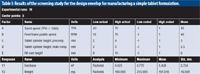 Table I: Results of the screening study for the design envelop for manufacturing a simple tablet formulation.