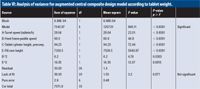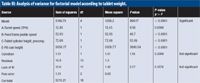 Table III: Analysis of variance for factorial model according to tablet weight.