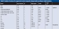 Table VI: Analysis of variance for augmented central composite design model according to tablet weight.