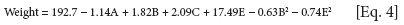 In the next equation, R2 is 0.9955, adjusted R2 is 0.9945, and adequate precision is 126.423. The R2 of 0.9955 is in reasonable agreement with the adjusted R2 of 0.9945. The adequate precision ratio of 126.423 indicates an adequate signal, so the following equation, in terms of coded factors, can be used to establish the design space: