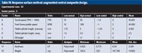 Table IV: Response surface method: augmented central composite design.