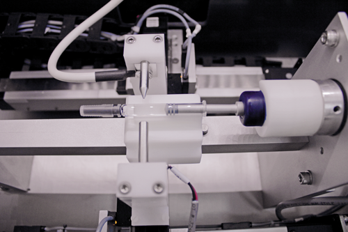 To obtain reliable and accurate results, leak-test methods should use qualified instruments that are validated for sensitivity, accuracy, robustness, repeatability, and reproducibility. Test methods that can be validated for accuracy and sensitivity are more easily transferred or duplicated from site to site. Non-subjective and quantitative test solutions provide clear assessment of quality assurance. Technologies that provide non-subjective, quantitative, non-destructive test results include helium, vacuum decay, and high voltage leak detection (HVLD). Figure 2 shows a HVLD system scanning a syringe, which rotates between a high-voltage probe and a ground probe. The high-voltage current will pass through even a small breach and be detected by the instrument. Vacuum decay and HVLD are established methods used by the pharmaceutical industry to provide reliable and sensitive CCIT of sterile barrier packaging. These methods provide the ability to test for CCI against calibrated standards and transfer validated methods from site to site and across various package and product groups.
