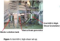 Granulation is one of most important unit operations involved in solid dosage form manufacturing and several granulation technologies have been developed. Traditionally, an aqueous solution of a binder is sprayed on the powder during mixing in a granulator. In 2003, The Dow Chemical Company (Midland, MI) introduced foam technology for delivering aqueous binder systems in high-shear and fluid-bed wet granulation applications (1) (see Figure 1). A foam generator can be set up with a binder solution tank and high-sheer granulator to introduce the binder as a foam rather than spraying or pouring in binder onto a moving powder bed. Last year, Pharmaceutical Technology published an article discussing the scale-up of foam granulation technology in a high-shear process (2) (see Figures 2, 3). As a follow-up to that discussion, Paul Sheskey, research and development leader at Dow, provides an update on foam granulation, including process challenges the company has encountered from industry and future applications of the technology.