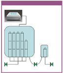 One 30-in. cartridge (cartridge E) was then replaced by a 20-in. cartridge. A 10-in. filter housing, containing the bubble-point failing cartridge, was connected in parallel with the multiround housing, consequently representing a five-round 30-in. setup in terms of membrane surface. The system containing cartridges A, B, C, D, F, and G was tested with bubble-point and multipoint diffusion tests. All cartridges were rinsed between each of the three tests (see Figure 3).