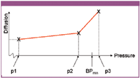 The multipoint diffusion test will create a diffusive flow profile (diffusion versus applied pressure) of the filter system over a broad range of test pressures all the way up to the characteristic bulk flow of the bubble point. The combination of multipoint diffusion test and bubble point leverages the advantages of the combination and increases a higher accuracy of detection.