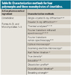 Table Ib: Characterization methods for four polymorphs and three monohydrates of cimetidine.