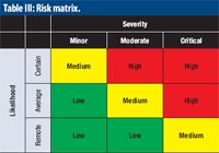 Table III: Risk matrix.