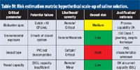Table IV: Risk estimation matrix: hypothetical scale-up of saline solution.