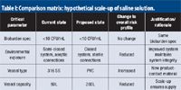 Table I: Comparison matrix: hypothetical scale-up of saline solution.