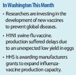 As part of its mission to fund research and production of public health medical countermeasures, HHS' Biomedical Advanced Research & Development Authority (BARDA) has awarded grants and contracts during the past five years to expand manufacturing capacity for pandemic influenza vaccine. For example, BARDA funds construction of new facilities and retrofitting of existing plants. The goal is to create more robust, flexible, and scalable manufacturing systems that can produce 150 million doses in six months, explained BARDA director Robin Robinson at the NIH seminar. Cell-based vaccine production, according to BARDA, could meet surge capacity needs more successfully because cells could be frozen and stored in advance of an epidemic.