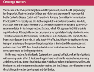 Still, the vaccine business carries considerable risks. Pfizer has run into delays gaining FDA approval of its improved Prevnar 13 vaccine for pneumococcal disease in children, despite its priority-review status and strong recommendation for approval by an advisory committee last November. Merck has found it hard to sell its shingles vaccine Zostavax largely due to Medicare reimbursement complications (see sidebar, "Coverage matters").