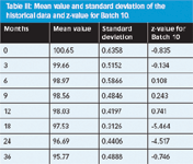 Table III: Mean value and standard deviation of the historical data and z-value for Batch 10.