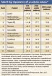 US prescription volumes. Pfizer's Lipitor kept its top position on a volume basis (number of prescriptions dispensed) in the United States with 74 million prescriptions in 2006 (see Table IV). Hydrocodone–acetaminophen (ranked second), escitalopram (ranked ninth), and albuterol (ranked 10th) also kept their rankings in 2006.