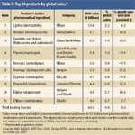 Eight products—Pfizer's "Lipitor," AstraZeneca's "Nexium," GlaxoSmithKline's (GSK) "Seretide–Advair," Sanofi-Aventis's and Bristol-Myers Squibb's (BMS) "Plavix," Pfizer's "Norvasc," Eli Lilly's "Zyprexa," Johnson & Johnson's (J&J) "Risperdal," and Wyeth's "Effexor"—retained their spots among the top 10 global pharmaceuticals in 2006 (see Table II). Amgen's "Aranesp" and Amgen's and Wyeth's "Enbrel" were two new biologic additions to the top 10 in 2006. Falling out of the top 10 were Merck & Co.'s "Zocor" (simvastatin) and TAP Pharmaceutical Products's "Ogastro–Prevacid" (lansoprazole).