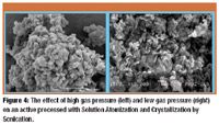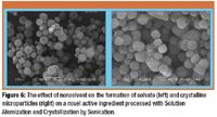 Power ultrasound and the selection of the appropriate nonsolvent are the keys to collecting concentrated droplets and inducing ultrasound-assisted nucleation. Applying ultrasound delivers astonishing results in terms of particle shape (see Figure 6). However, the choice of solvent has an equal effect on the resulting particles. SAX technology in general has shown potential in morphology control. It helps to generate the targeted particles and engineer them to the requirements of their ultimate end use.