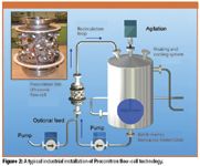 The key feature of the Prosonitron design is that the most significant transient cavitation takes place in the center of the device. The equipment is modular and easily cleaned for production according to current good manufacturing practice. It also can be steam-sterilized and is therefore useful for the aseptic manufacture of antibiotics, for example.