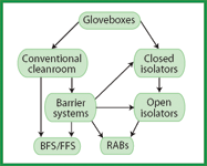Limitations and comparison with isolators. Clearly, RABS have the potential to improve contamination control over what might be termed limited access aseptic barriers, which have been used in cleanrooms for years. It is our opinion, however, that RABS that allow some open interventions by gowned operators fall well short of the ideal of advanced aseptic processing (see sidebar, "Advanced aseptic processing requirements").