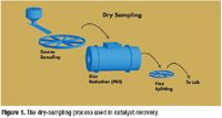 Sampling techniques. Precious-metal refiners generally use three different sampling techniques: dry sampling, melt sampling, and solution sampling. The choice of method depends on the type of material to be processed and its precious-metal content. Because most catalysts for pharmaceutical processing are based on carbon, dry sampling is often applied to these materials. Dry sampling is the most complex of the three sampling approaches and is used when materials cannot be dissolved in a solution or are not suitable for melt sampling because of their structure. Because it is difficult to achieve true homogeneity by means of dry sampling, refiners using this technique should have expertise and sound judgmental skills. And for maximum sampling accuracy, spent catalysts must be properly prepared prior to dry sampling.