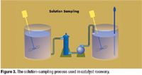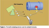 Melt sampling and solution sampling. Similarly, melt sampling (see Figure 2) and solution sampling (see Figure 3) involve the reduction of spent catalysts and their PGMs into slurries and liquid solutions, respectively, from which the amount of precious-metals content can be accurately determined.