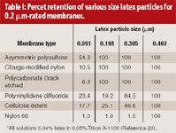 Table I: Percent retention of various size latex particles for 0.2 μm-rated membranes.