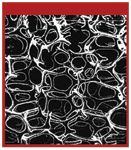 It is hypothesized that the formation of the microporous membrane structure accords with the known phenomenon of "soap bubble clustering" (7). The reasons for this resemblance is that in both cases there is the coming together of spheres whose spatial clustering is under the influence of area-minimizing forces. The geometric consequences of these forces is known from the study of soap bubbles (8). Polygonal facets characterize the resulting spaces of a free-floating cluster of soap bubbles (see Figure 1). In the pore formation, the nonsolvent of the casting solution takes the place of the air of the bubbles. In support of such structures, Figure 2 is that of a detergent foam confined between glass plates. The polyhedral spatial structures are obvious. Figure 3 is of a reticulated polyurethane (polymeric) foam. The cellular pores can be seen, in fact, to be polygonal in shape. The phenomenon of clustering through polyhedral spatial arrangements is manifested in other settings as well. It is a trait of zeolitic molecular sieves whose interconnection is through the open panels common to contiguous polyhedra, albeit caused by crystal-packing rather than area-minimizing forces (7). There is, therefore, technical support for the concept of polyhedral microporous structures.