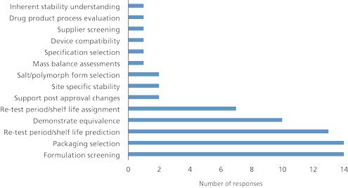 Three companies provided further details of how RBPS approaches were used in marketing applications. In all three instances, successful applications were reported in major markets. Regulatory questions on the RBPS approaches in marketing applications were received from the US, EU, South Korea, Australia, Switzerland, Singapore, Israel, and Malaysia but all reportedly answered satisfactorily. One responder commented that the predictive stability approaches have been accepted by the vast majority of health agencies without questions. The predictions were used by the three responders for a range of purposes in marketing submissions including: as supportive stability data, to set initial shelf-life/retest period, for packaging selection, for excipient compatibility, for specification justification, and to demonstrate equivalence. The data were typically presented alongside full ICH stability testing.