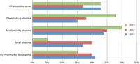 Figure 3: Which client segment has been the best performing in your company this year?The most striking result in this year’s survey is the shift in where CDMOs say their business is coming from (see Figure 3). In this year’s survey, only 5% of sell-side respondents indicated that small bio/pharma companies have been their best-performing clients. That is a big drop from previous years.In the four years before 2013, the share of respondents indicating that small bio/pharma companies have been their best-performing segment averaged 22%. The drop undoubtedly reflects the difficult funding conditions that early-stage companies have faced in recent years.