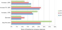 Figure 1: How will your contract services spending change this year? (All figures are courtesy of the author.)Responses from professionals at bio/pharmaceutical companies indicate that spending on contract services is up in 2013, but at a more modest rate than last year (see Figure 1). Just 30% of buy-side respondents indicated that spending this year will increase by 10% or more; in 2011 and 2012, 43% expected spending growth of 10% or more. Further, the number of respondents indicating that spending year-over-year will remain flat jumped from 27% in 2011 and 2012 to 37% in 2013.