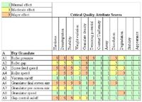 Figure 4 shows an example of results following the compilation of the scoring process. The example illustrated focuses on a single product attribute (tablet hardness) and a single processing step (dry granulation). The full exercise produces individual tables compiling project team views regarding each processing parameter in relation to each CQA.