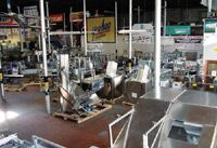 Looking a bit like a trade show, the warehouse floor at Loeb Equipment displays used packaging machines and entire packaging lines for prospective buyers' inspection. (IMAGE IS COURTESY OF LOEB EQUIPMENT)