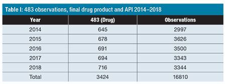 Table I: 483 observations final drug product and API 2014–2018.