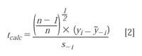 The logic of the Weisberg t-test. After computing the estimates without the suspected outlier, the Weisberg t-test statistic for the suspected outlier (denoted by yi) is given in Equation 2