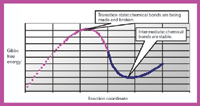 Transition-state theory. The transition-state theory, supported by the Hammond postulate for Gibbs free energy of mathematical maximums and minimums for reaction growth diagrams, is used to divide the laboratory charts into various reactant intermediate states (see Figure 2) (2). The transition-state theory for enzyme-catalyzed chemical reactions states the following: