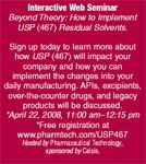 The i's have been dotted, and the t's have been crossed. After years of revisions, debates, and delays, the USP General Chapter 467 Residual Solvents will finally take effect on July 1, 2008. Although most large, multinational pharmaceutical companies have been preparing for these requirements for some time, there is still a significant portion of the industry, especially smaller firms, that are either not aware of how USP ‹467› will change their analytical practices or are in denial that the standards will directly affect them.