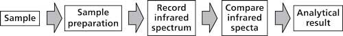Using infrared identification as an example of an analytical technique, the steps, decisions, and actions performed when an analyst completes material identification by infrared spectroscopy have to be identified. For infrared, the high-level process steps associated with performing material identification are shown in Figure 1 and appear relatively simple.