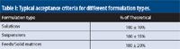 Table I: Typical acceptance criteria for different formulation types.
