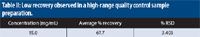 Table II: Low recovery observed in a high-range quality control sample preparation.